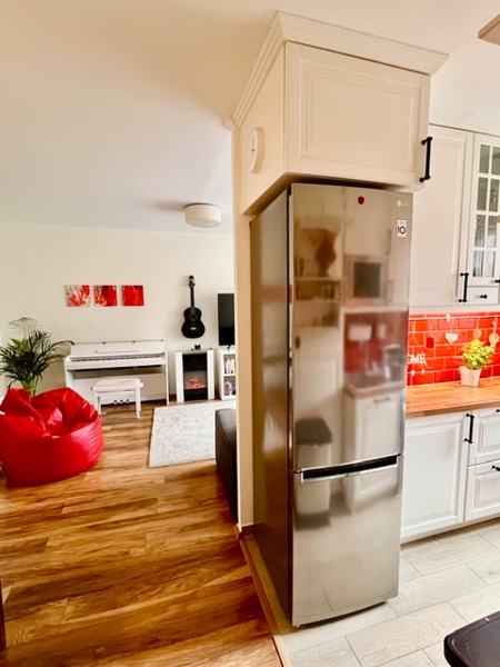 •Tágas, amerikai konyhás nappali + étkező, amely nagy, közösségi életteret biztosít. (Az eredeti konyhafal elbontásra került, így került kialakításra az egybenyitott tér)